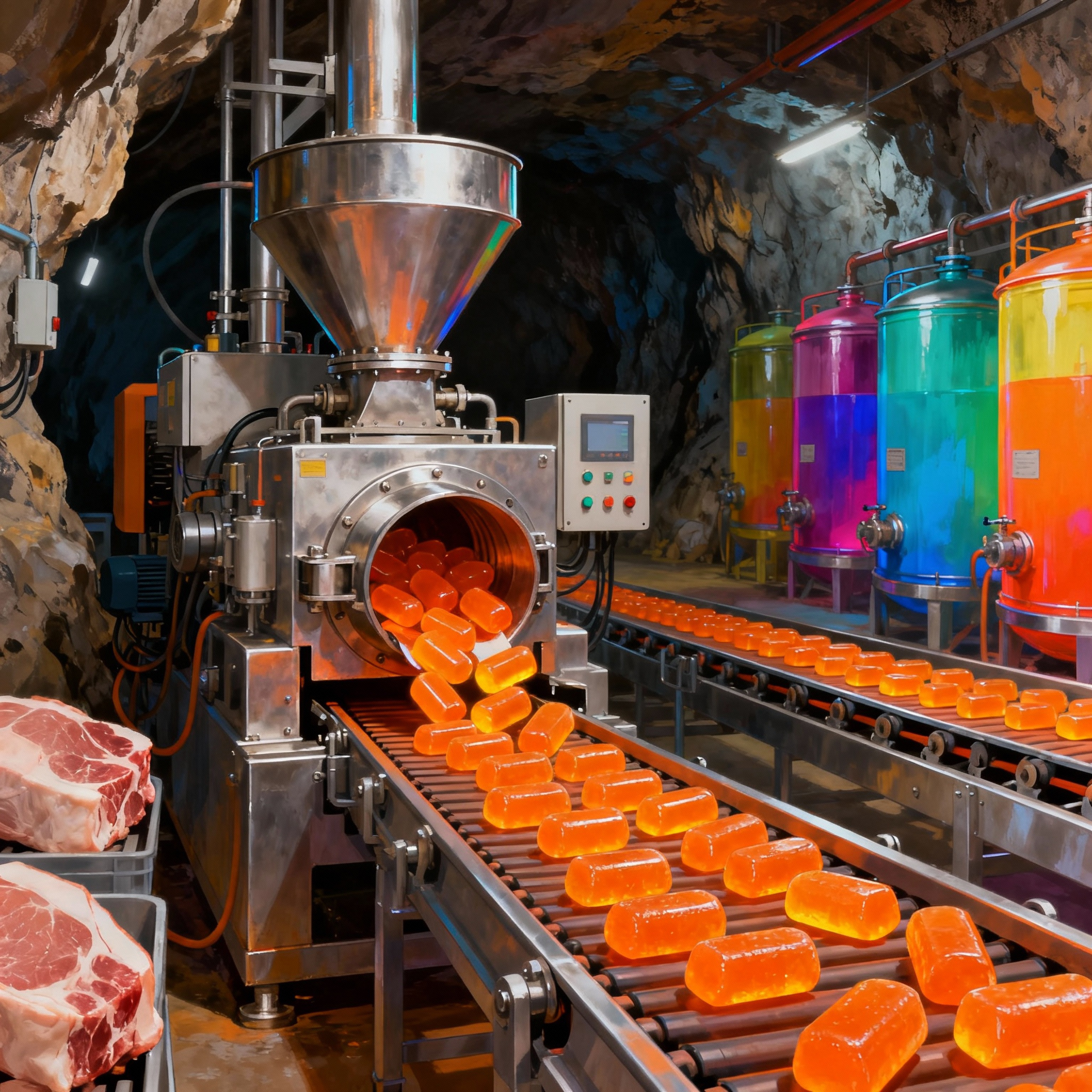 The pork lozenges are the iconic and addictive confection at the heart of Chow Island’s economy and power structure. Crafted through a closely guarded process fueled by methane harvested from the island’s prized Montana bulls, the lozenges combine pork essence, opiate syrup, and a bio-adhesive compound derived from purified methane. This unique blend gives the lozenges their signature texture and potent bio-active properties that captivate consumers worldwide. More than mere sweets, these lozenges serve as a symbol of control and influence, weaving a complex web of dependency, commerce, and covert manipulation across Chow Island and beyond.